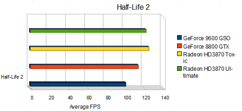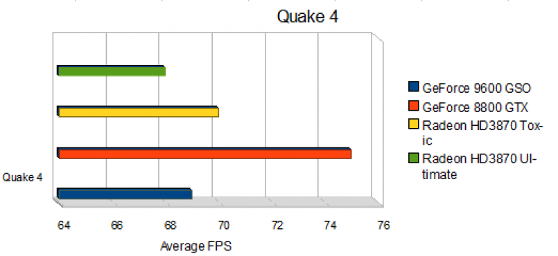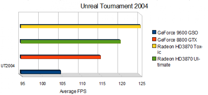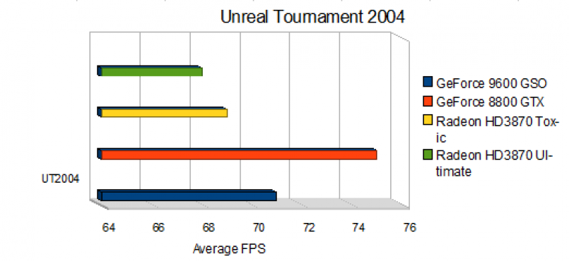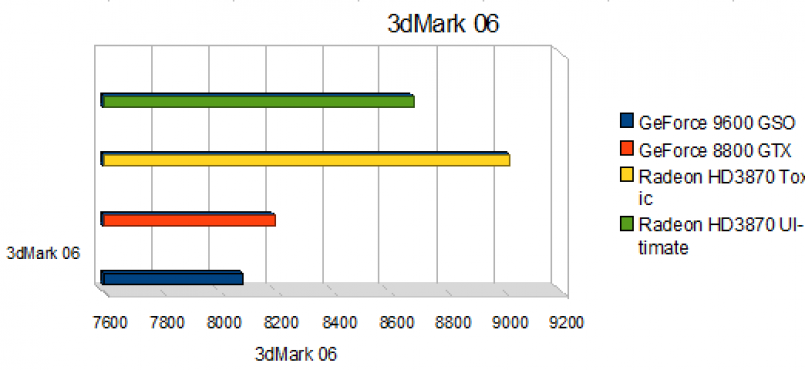 That said, I’ll be able to compare the 9600 GSO directly against the Radeon HD3870 Ultimate and Toxic I reviewed previously. Let’s get started with the Windows benchmarks. I’ll be looking at performance in 3dMark06 and Vantage, Unreal Tournament 2004, Unreal Tournament 3, Crysis, Quake 4, and Half-Life 2.