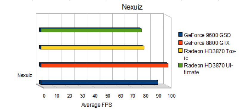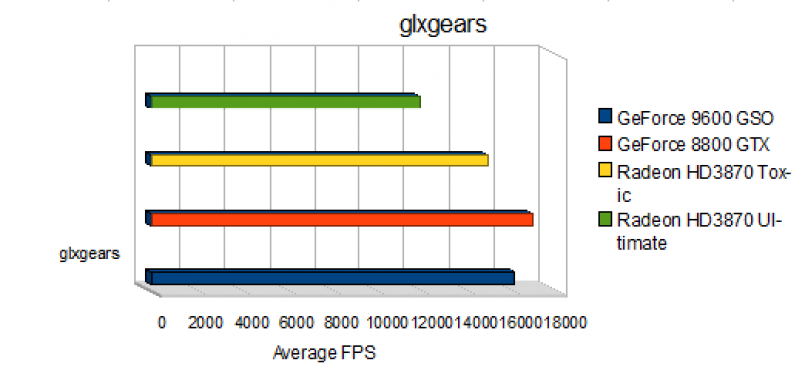 As I expected, the 9600 GSO fell a little behind the 8800 GTX, but still whooped the Radeon HD3870 series cards. I attribute this to nVidia’s Linux driver simply beind better than AMD’s. Regardless of this, the Palit GeForce 9600 GSO proves that it’s a great choice for a Linux card, and definitely pulls the performance that I want to see from the card.