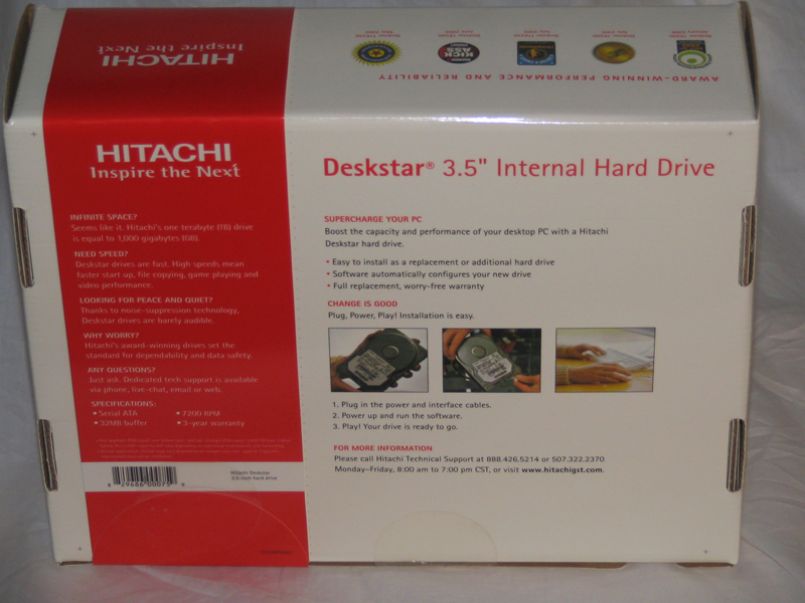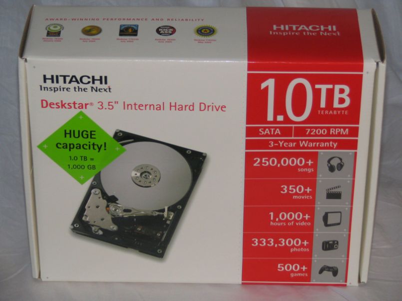 Hitachi was the first company to release a one terabyte hard drive, and they’ve sent us the DeskStar 7K1000 model for review. The DeskStar 7K1000 features SATA II compatibility, 8.5ms seek time, and 7200RPM rotational speed.