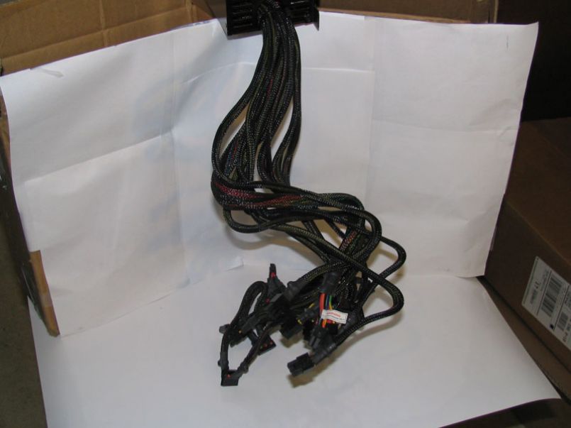 The box opened up to reveal a bubble-wrapped power supply and a spare power cord. Removing the bubble wrap, I found an attractive, dark-gray-colored power supply, and several cables fully sleeved in black nylon.