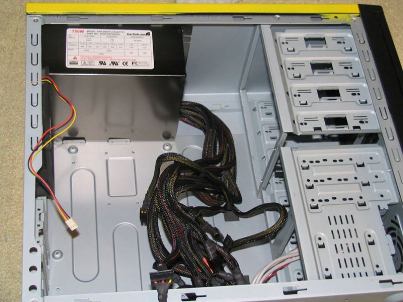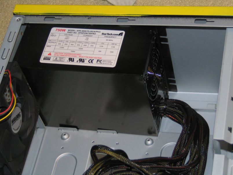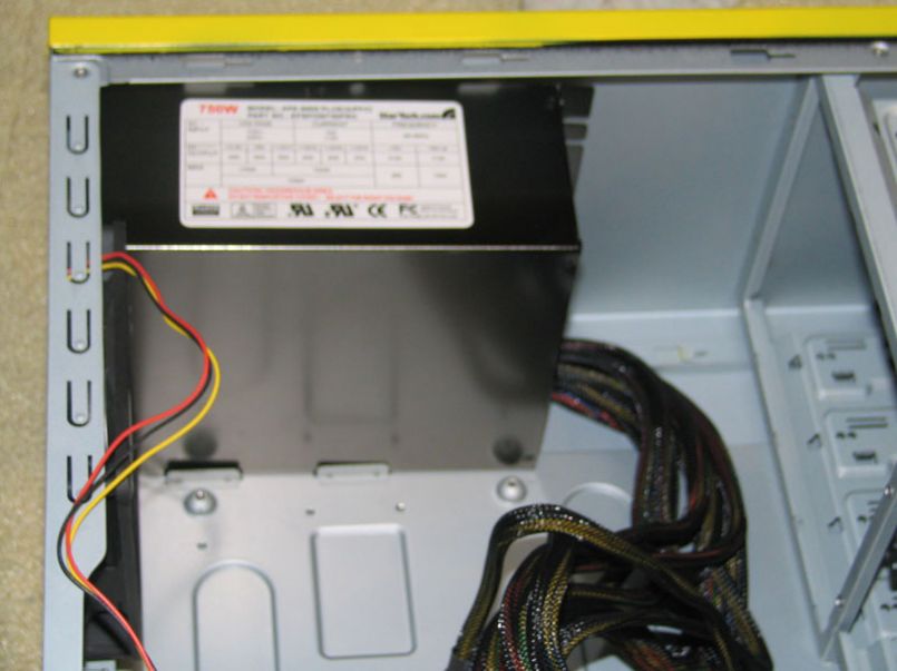 Initially, I attempted to install the EPSPOW750PRO in my Thermaltake Armor Jr. case, but it proved impractical. Without removing both the CPU heatsink and all of my 5.25″ drives, the power supply simply wasn’t going to fit. Instead, I opted for an empty case to which I could transfer other components.