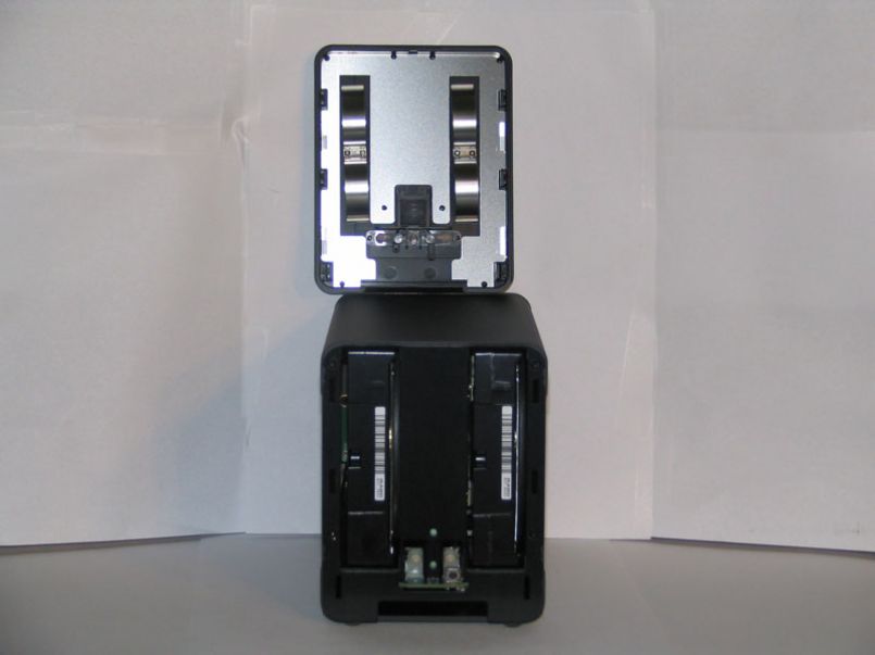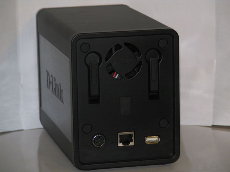 Much like a PC, all of the ports are on the rear of the case.There’s an eSATA power port, although I did not test it with a normaleSATA power supply, so don’t take my word on this. There’s also anethernet jack and USB port. The enclosure utilizes a gigabit connectionto ensure the best transfer speeds over the network, and the USB portis meant for use as a print server. Not only is the device at a networkdrive enclosure, but also a print server.