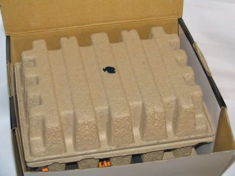 Opening the box, I found that everything was packaged between twoegg crates. This seems like much higher quality packaging than some ofyour typical cheap-cardboard holders. The enclosure was the first thingin the box, wrapped up in plastic.