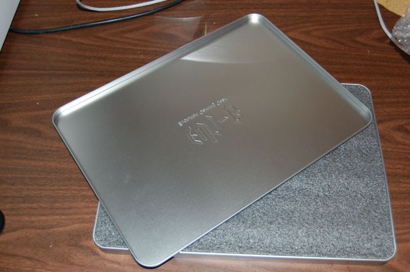 The Evo-G MP1 came in an aluminum case bearing the Evo-G logo, to keep the pad safe during transport or storage. The case’s lid removes completely to reveal the pad, covered on all sides by foam material to protect it.