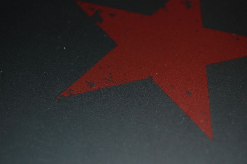 Inside, I saw the mouse pad itself, which sports a gorgeous metallic look with a red star in the middle that makes me think of something that would appear on the side of a military vehicle. The bottom is a treaded rubber surface to keep traction on its host surface.