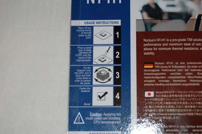 After look at Noctua’s NF-P12 120mm case fan, I was convinced that Noctua knew cooling. The NT-H1 thermal compound only reaffirms this. It also proves that every aspect of cooling is important, not just the size of a heatsink or speed of a fan.
