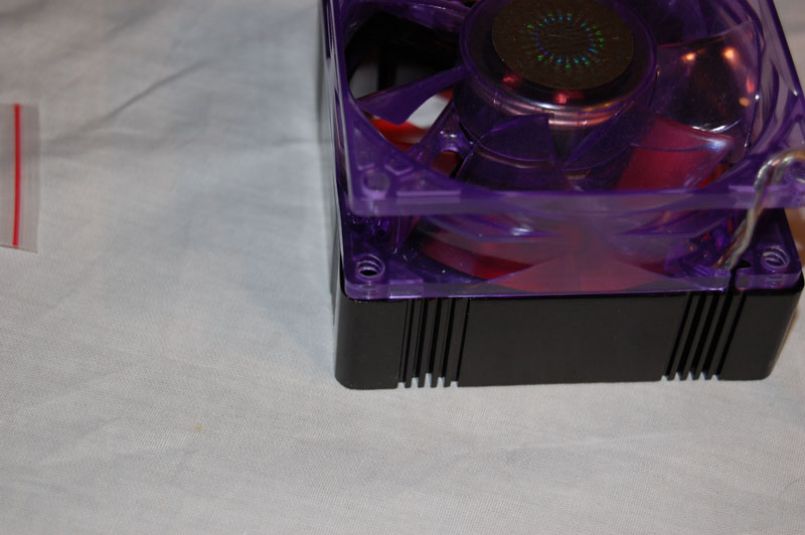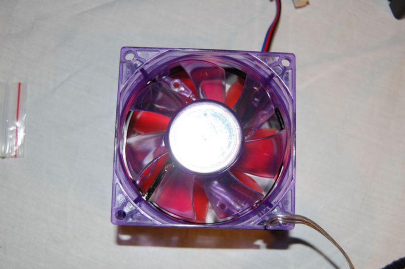 The fan support is also aluminum, but wasn’t cut with the rest of the frame. It was, rather, added in. The fan itself is a translucent red, which lights up when powered on.
