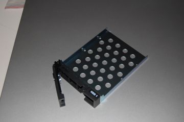 After making sure all the hot swap bays are unlocked, I removed the trays. This is done simply by pulling on the handle of each tray. The trays are most aluminum, with holes in the bases, presumably for cooling purposes.
