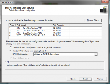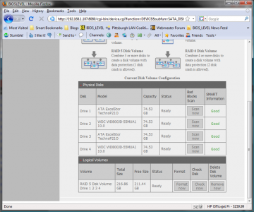 The RAID Management Tool tab allows me to configure additional RAID volumes, upgrade drives to large sizes, or add descriptions. It’s recommended that the manual has been read before using these functions, since data could potentially be lost if something is done wrong.