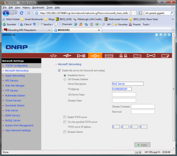 Lastly, it should be noted that in the Microsoft Networking tab, an active directory server can be assigned, so users and workgroups can be imported from the server. This will save a boatload of time when creating users and groups later.