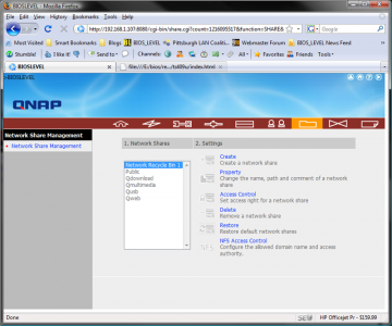 There are several shares available by default, such as a Public share, a Recycling Bin, and various shares for some of the software services available on the TS-409U.